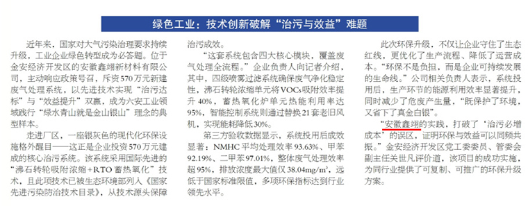 綠色工業(yè):安徽鑫翊以技術(shù)創(chuàng)新破解“治污與效益”難題